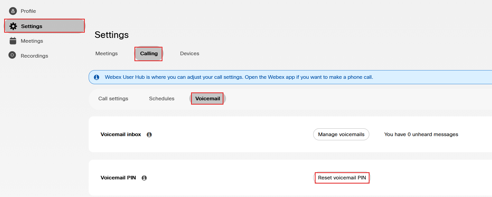 - Click the Calling tab at the top, then the Voicemail tab underneath.