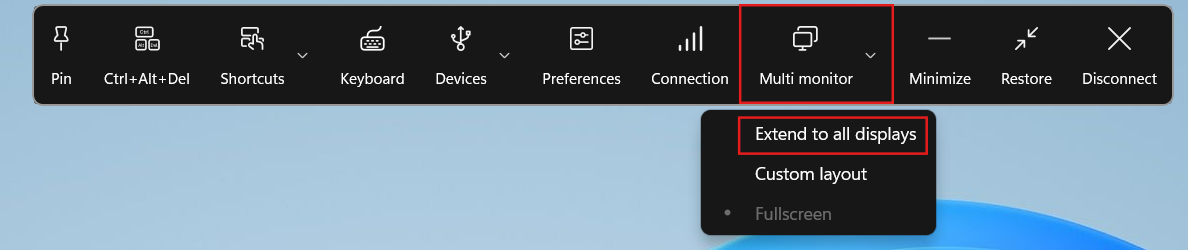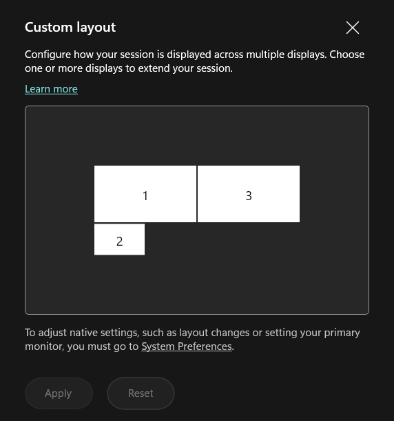 - Select Extend to all displays or Custom layout to select certain monitors to display on